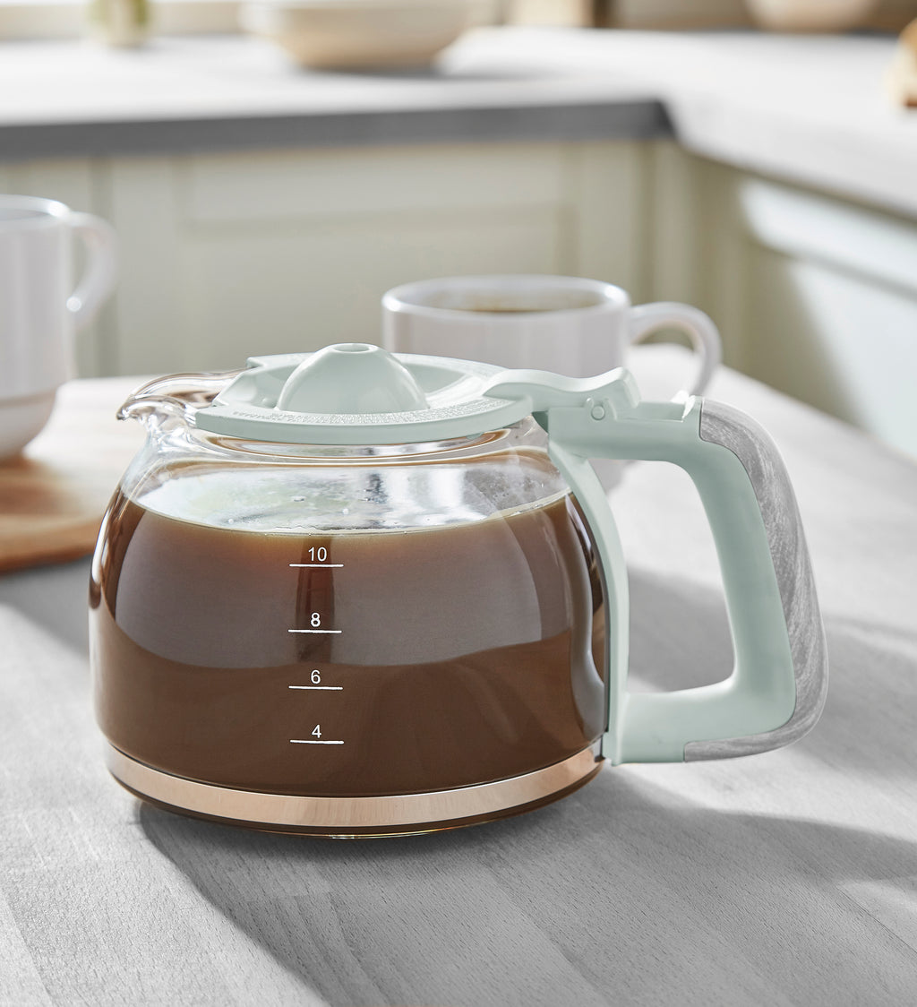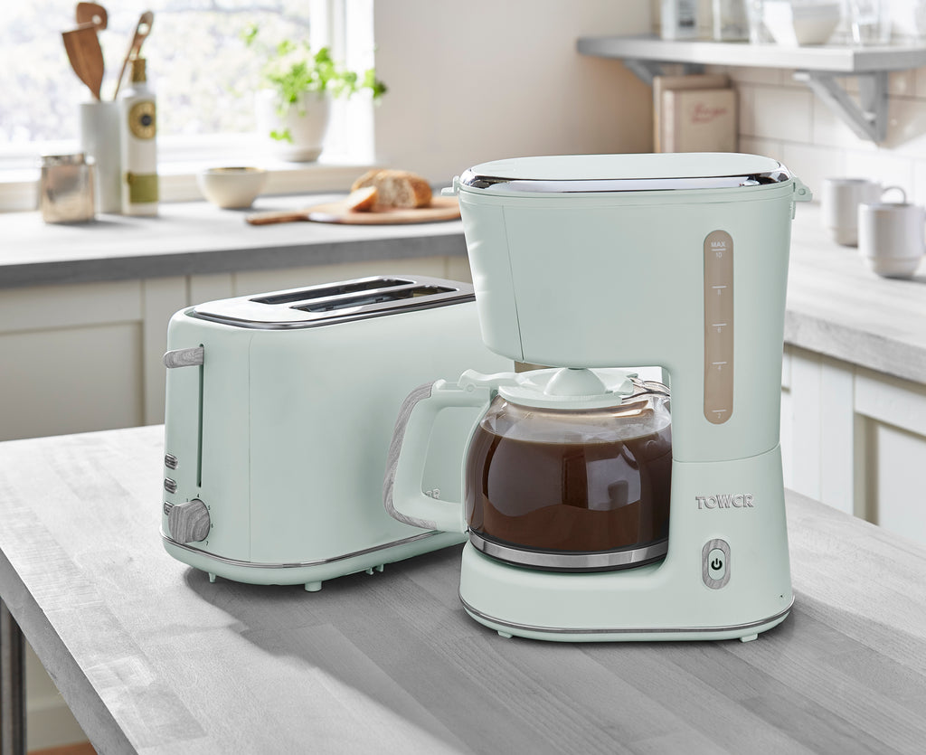 Get the aroma of a barista-style coffee in the comfort of your own home with this practical 900W Tower Scandi coffee maker. Constructed using sturdy glass carafe and featuring a large 1.25 litre capacity, you are able to brew up to 10 cups on a single use, which is great for enjoying a nice cup of coffee with friends and family. A handy keep warm function sustains the temperature of your coffee to ensure a fresh taste for longer, making it ideal for those busy days at home. The inclusion of an anti-spill function prevents messy countertops, while the anti -slip feet provide stability on your work surface. Comes with Tower's 3 year warranty.