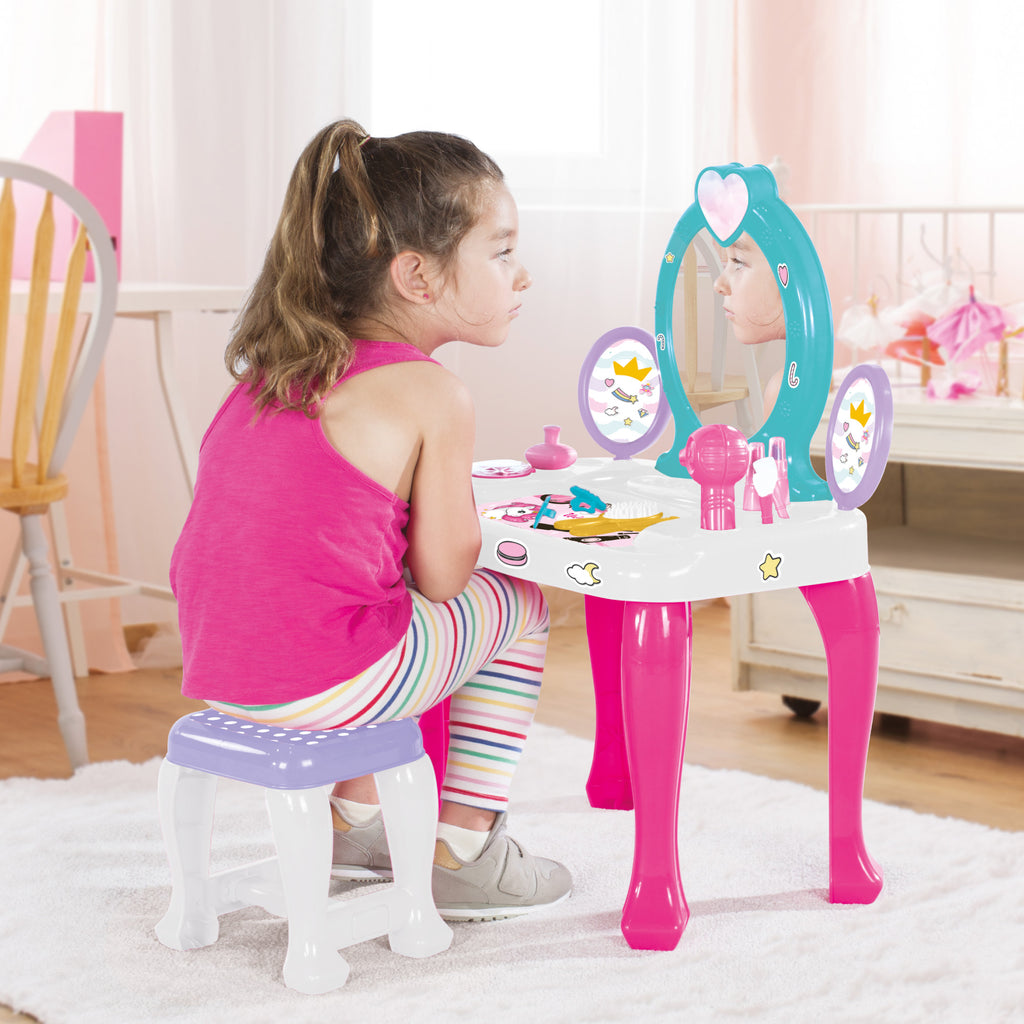 With everything they need at their fingertips, they can transform into their favourite characters or create stylish looks of their own! So, whether they're getting dolled up for a pretend party or simply enjoying some imaginative playtime, the Kids Vanity Table is the perfect addition to their playroom. Watch as they dazzle and delight in their own little world of make-believe!