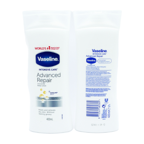 Vaseline Intensive Care Advanced Repair unscented lotion, we’ve combined healing micro-droplets of Vaseline Jelly and our highest levels of moisturising glycerine. When you have dry, rough, irritated skin you need something that will moisturise to help it heal fast. The result is a rich body lotion that gives you intense moisturisation.