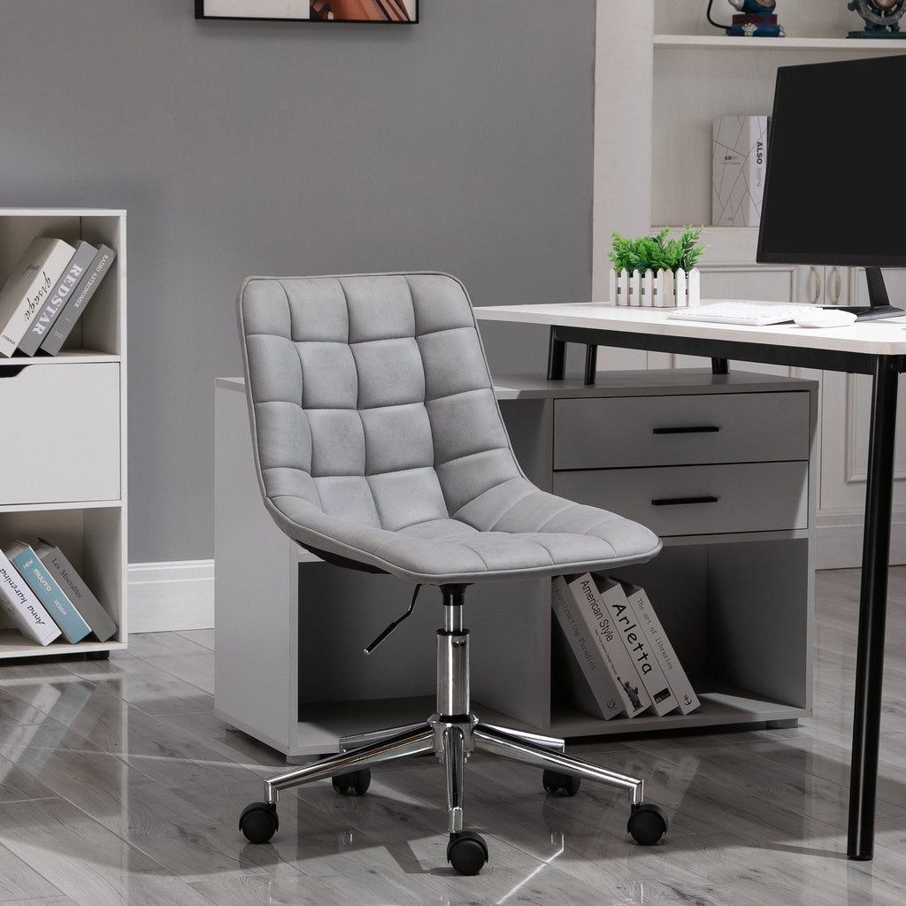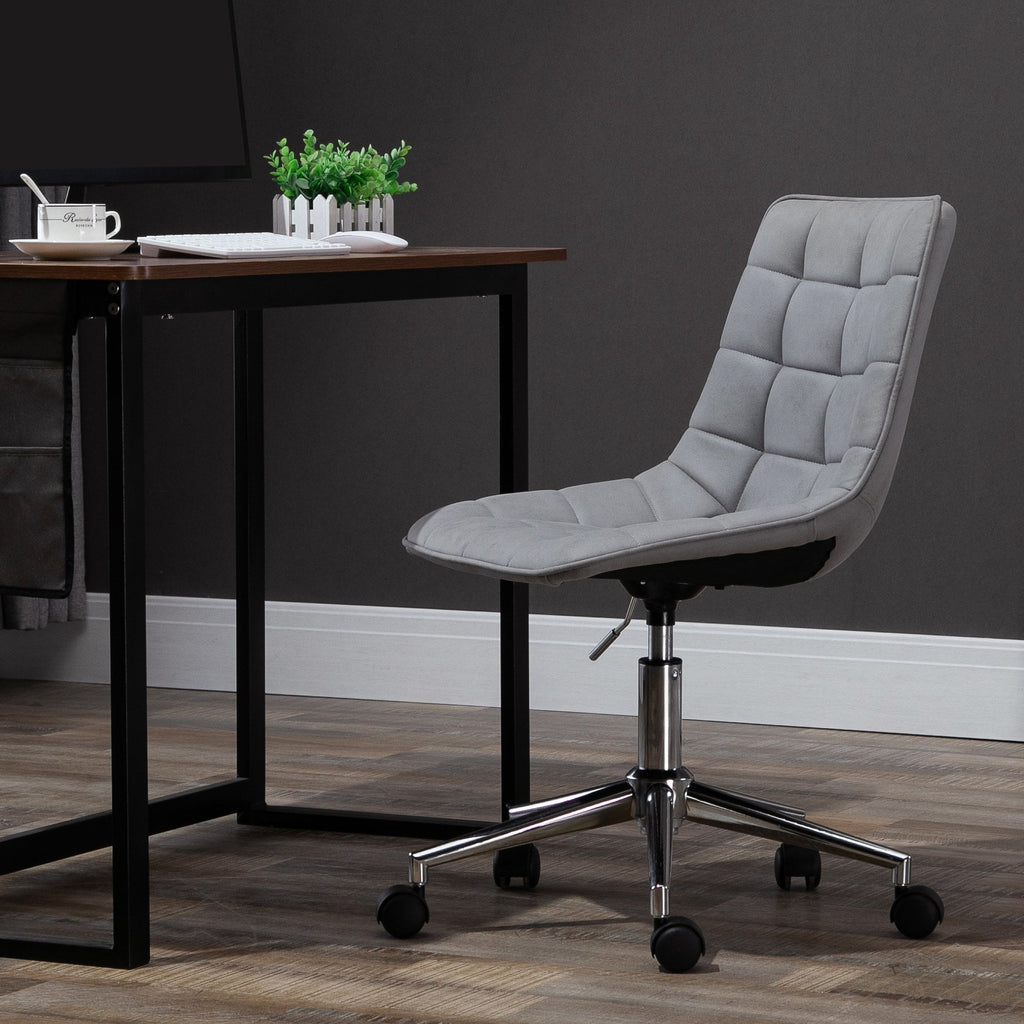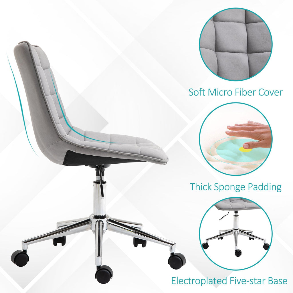 There's sophistication in the pure simplicity of this easy-going office chair from Vinsetto. The seat is formed into a relaxed shape for ultimate comfort, blending together a curved shape with no arms - perfect for working all day long. Wrapped in soft microfiber with sponge padding to extend the comfort, the seat is etched with a square design for style. With a swivel seat to move with your body, it's finished with five castor wheels to roll around easily on the floor. Whether it's placed in the office or in the home, you'll have instantly made the right choice.