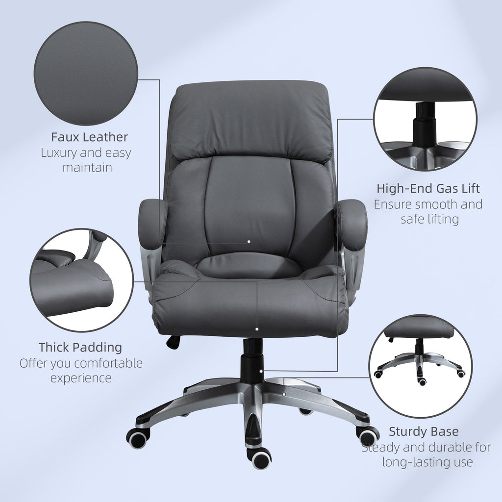 Vinsetto High Back Home Office Chair Swivel Executive PU Leather Ergonomic Chair, with Adjustable Height, Deep Grey