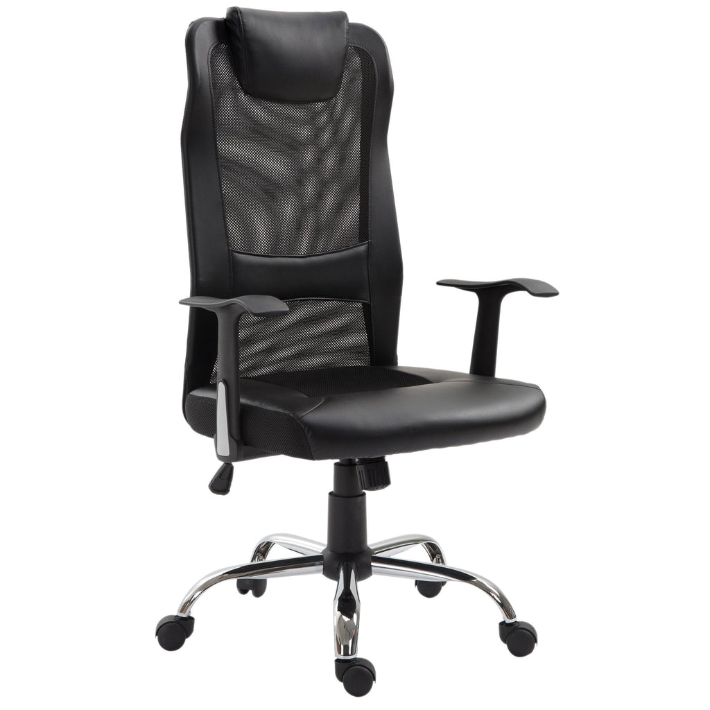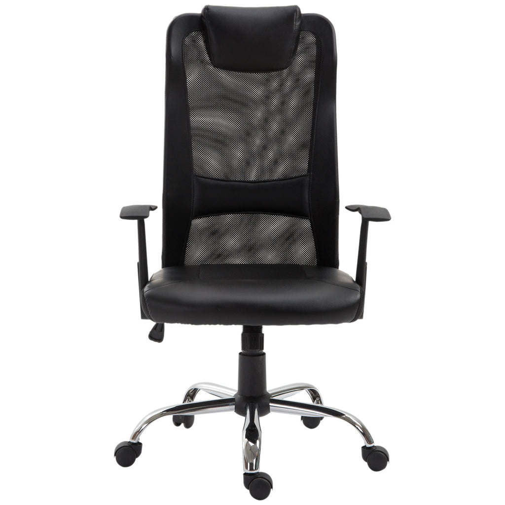 - MESH & PU LEATHER OFFICE CHAIR: Ergonomic high-back office chair with padded PU leather seat and head pillow and a breathable mesh back. Ideal for long-time working in office or at home.