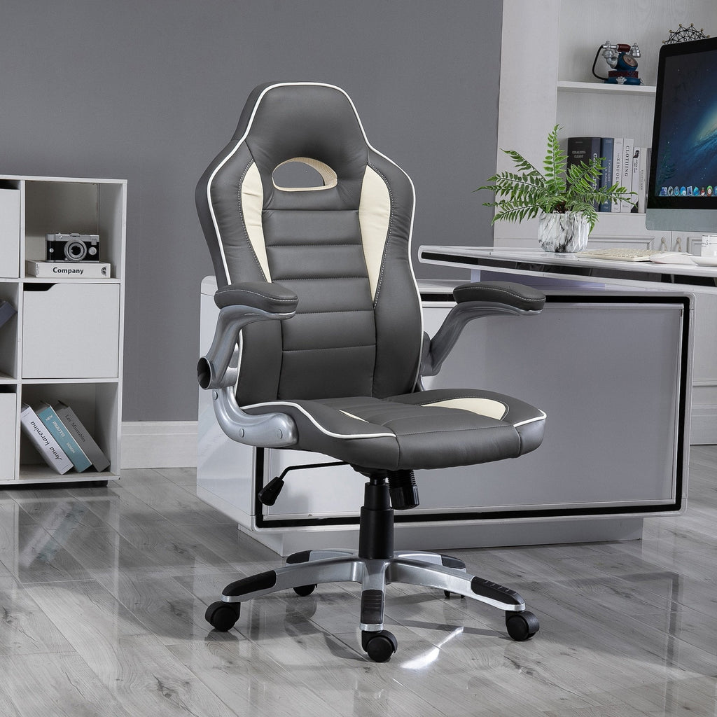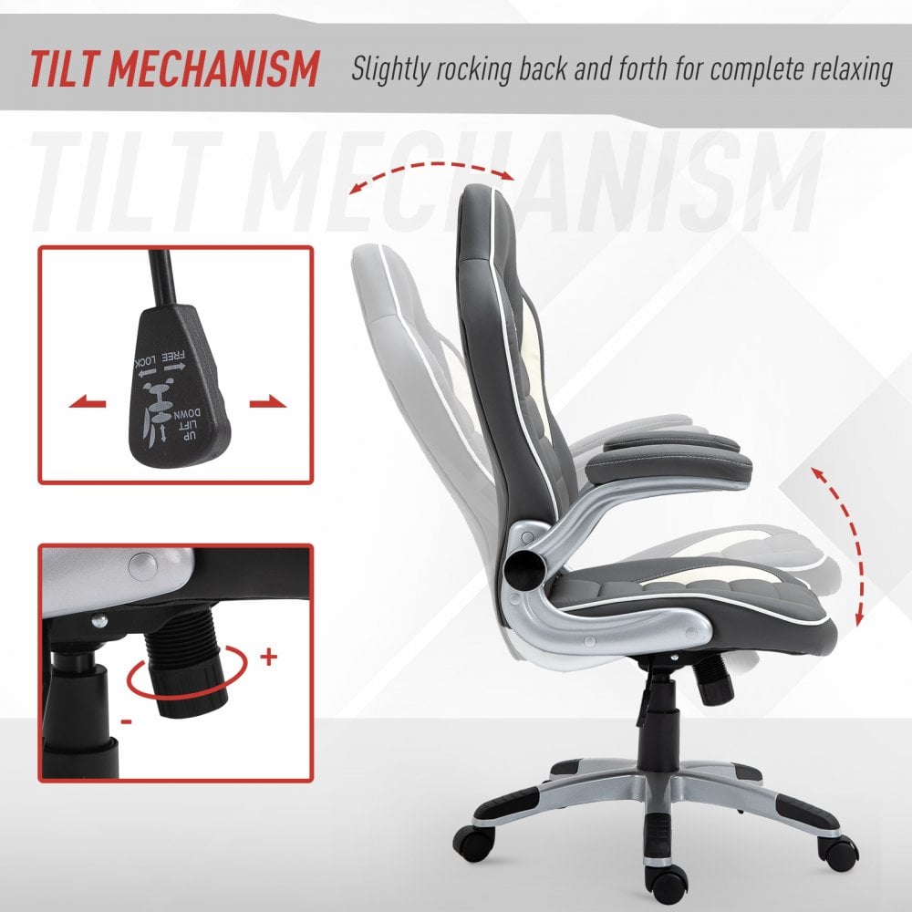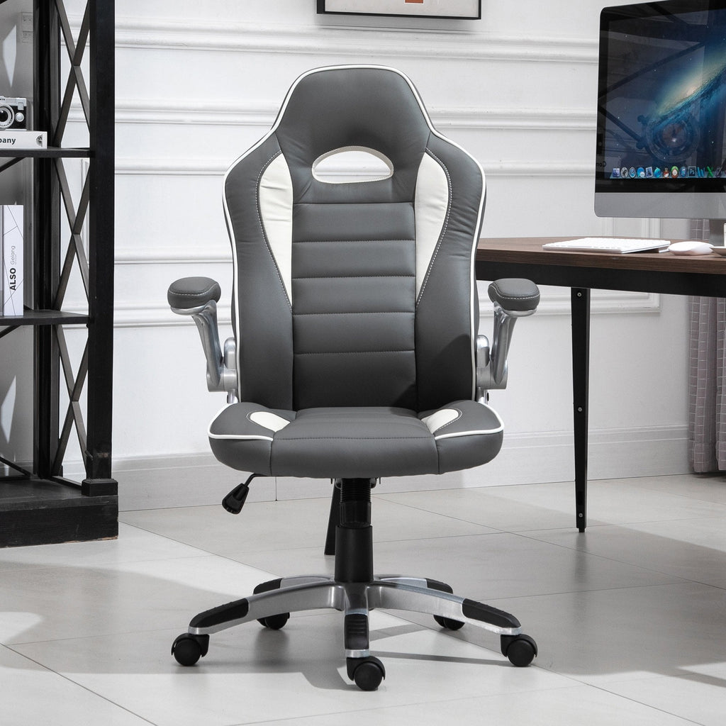 Vinsetto Home Office Chair Executive Height Adjustable Rolling Swivel Chair With Tilt Function PU Grey 69 x 65 x 112-122 cm