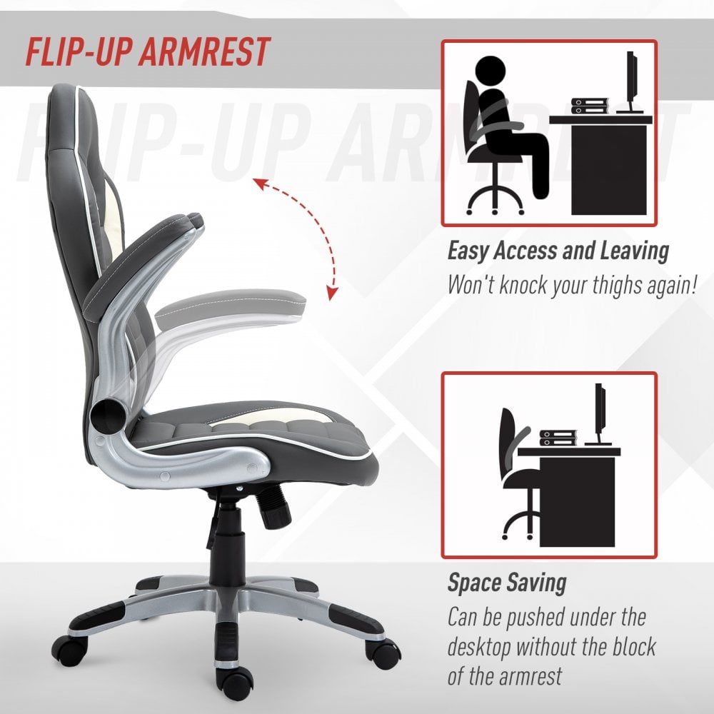 Ensure you have the best seat in the office with this executive chair from HOMCOM. With the ergonomic design, the office chair is suitable for comfortable all-day sitting and support. The unique armrest can be folded down, and you can sit or leave conveniently, without hitting your leg anymore! ItÔÇÜ+ä+¦s finished with a 360 degree swivel base and five caster wheels, meaning thereÔÇÜ+ä+¦s no need for you to get up all the time, saving you lots of time and energy.