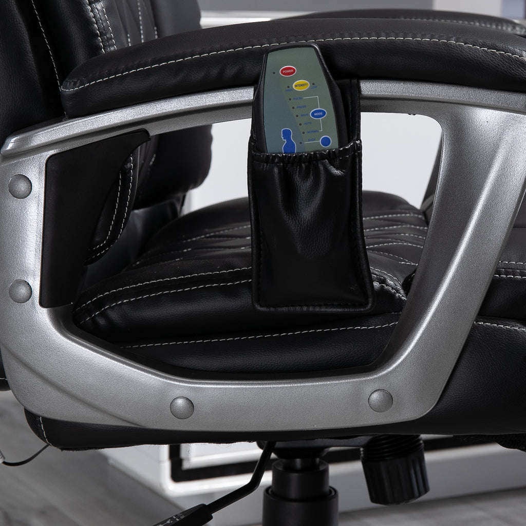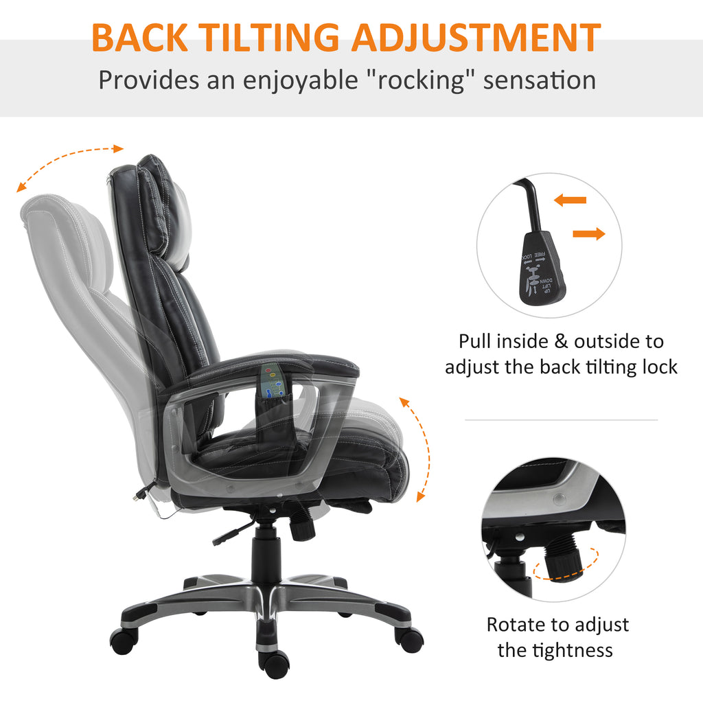 Let any aches or pains melt away as you sink into this massage chair for home from Vinsetto. Features six massage points and has five different modes. Thick padding with faux leather upholstery makes this swivel chair luxuriously soft. The 114-124cm adjustable height, combined with high back and armrests keeps you supported. What's more, you can tilt back and forth to relax. Combining comfort and functionality, for the everyday. • Extra padded top for your head/neck, in a cool diamond pattern