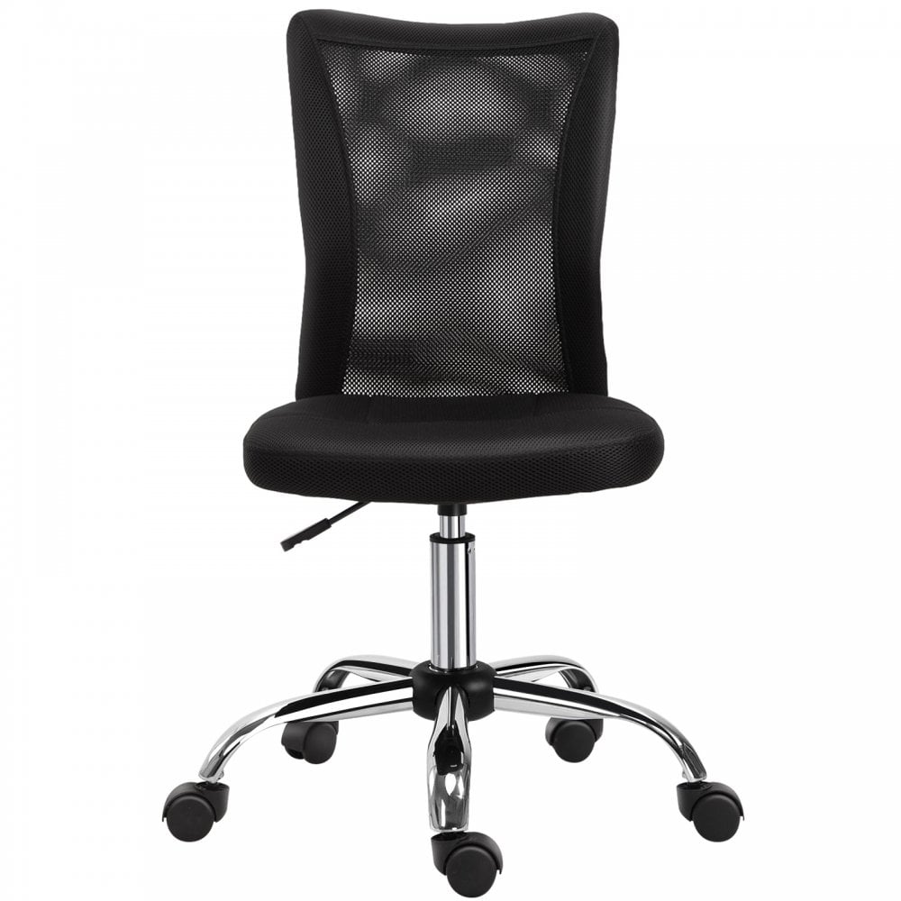 Keep comfortable whilst working all day with this office chair from Vinsetto. Ergonomic in design, it is fitted with thick foam to cushion and comfort your body whilst seated, with mesh on the back for your body to breathe. Slightly curved on the back for support as you lean back, the solid base is fitted with five wheels so you can move around easily and smoothly. With no arms, it will fit underneath your chair at any height, and its compact design is ideal for places with little room to spare.