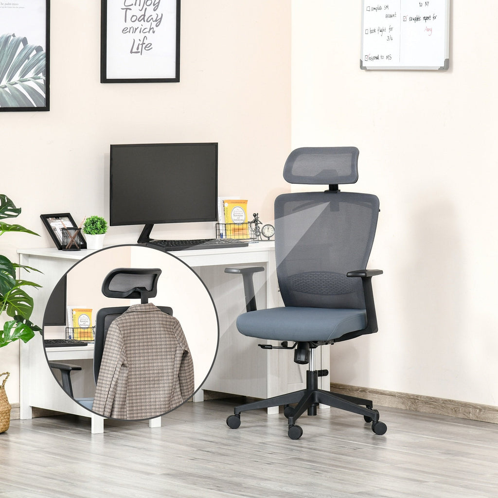 Long office hours require a comfortable and supportive place to sit - this is where this chair from Vinsetto comes into play. Designed with standard ergonomic features - a thick padded seat, armrests, high back and swivel seat - plus an adjustable headrest, adjustable lumbar support and reclining back, making it more comfortable than your standard piece. The full-swivel seat is padded for comfort, with hygienic mesh covering the back seat. Finished with five wheels to move around easily.