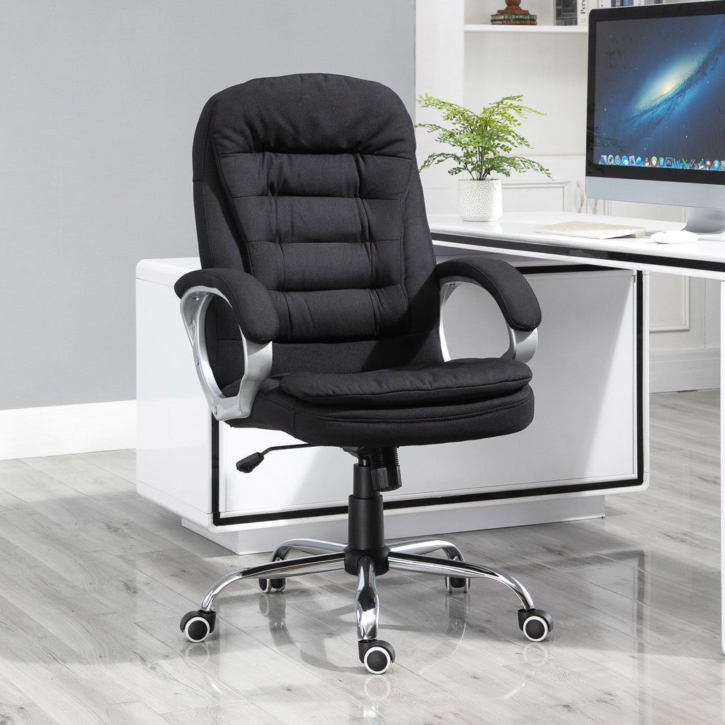 Made with supreme comfort and style in mind, this grey office chair from Vinsetto is the perfect accompaniment for you. Its ergonomic design ensures you are correctly supported whilst seated thanks to the adjustable height, high armrests and high back, helping to decrease any ache that can occur from incorrect seating. Padded all over for maximum comfort. A 360-¼? swivel base for easy movement, with linen upholstery to finish that allows your skin to breath. An ideal desk chair for you.