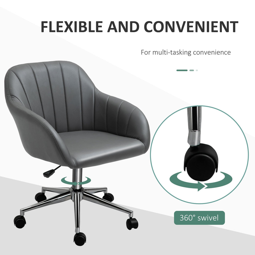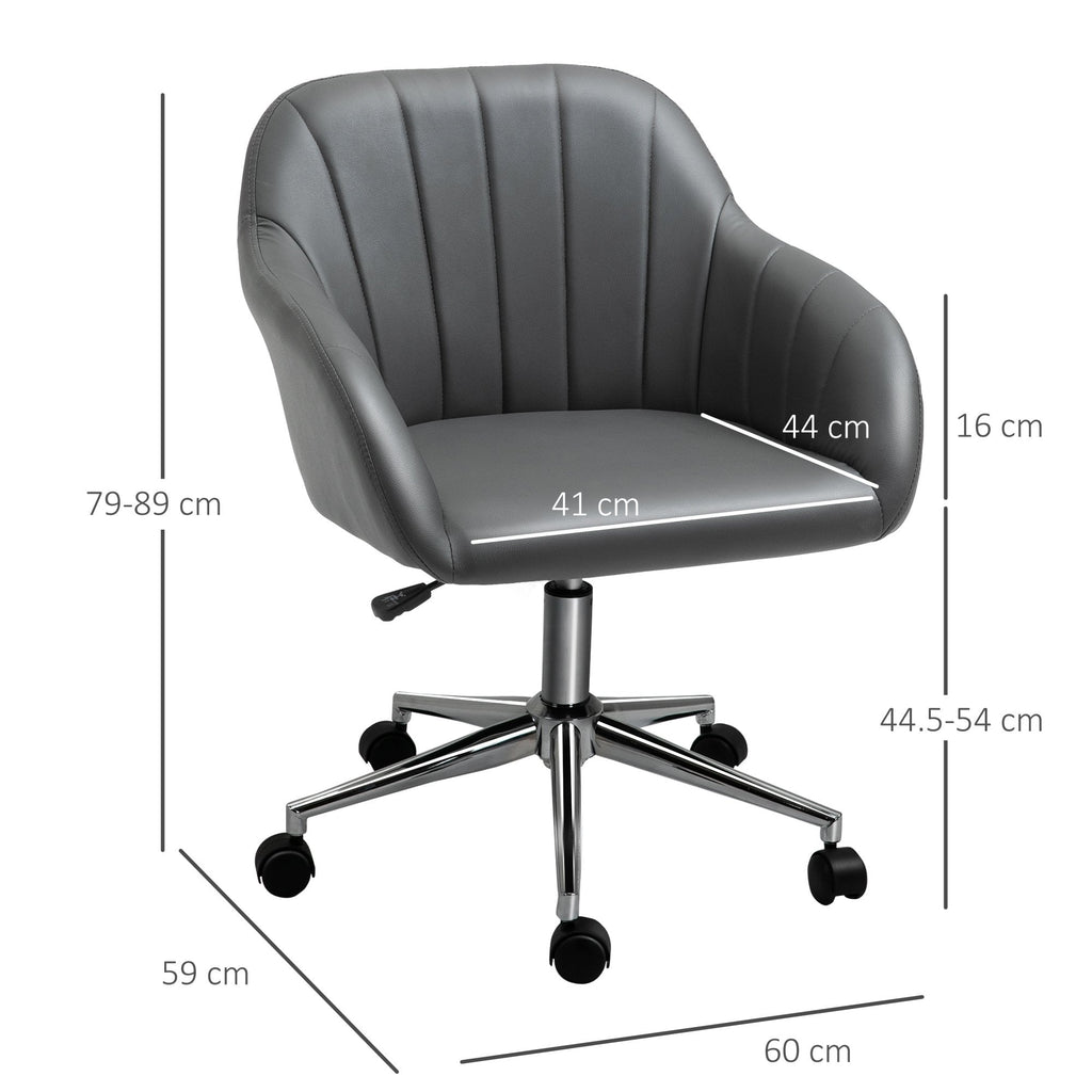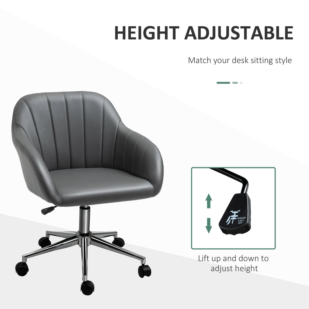 Create a stylish backdrop to your working times with this chair from Vinsetto. A tub shape, the seat is wrapped in faux leather for a sleek look, with the sloping curves giving it a relaxed look. Ergonomic design includes a high back and armrests, swivel seat and five wheels on the base. Height is adjustable too. Finished with line stitching on the back for extra detail.