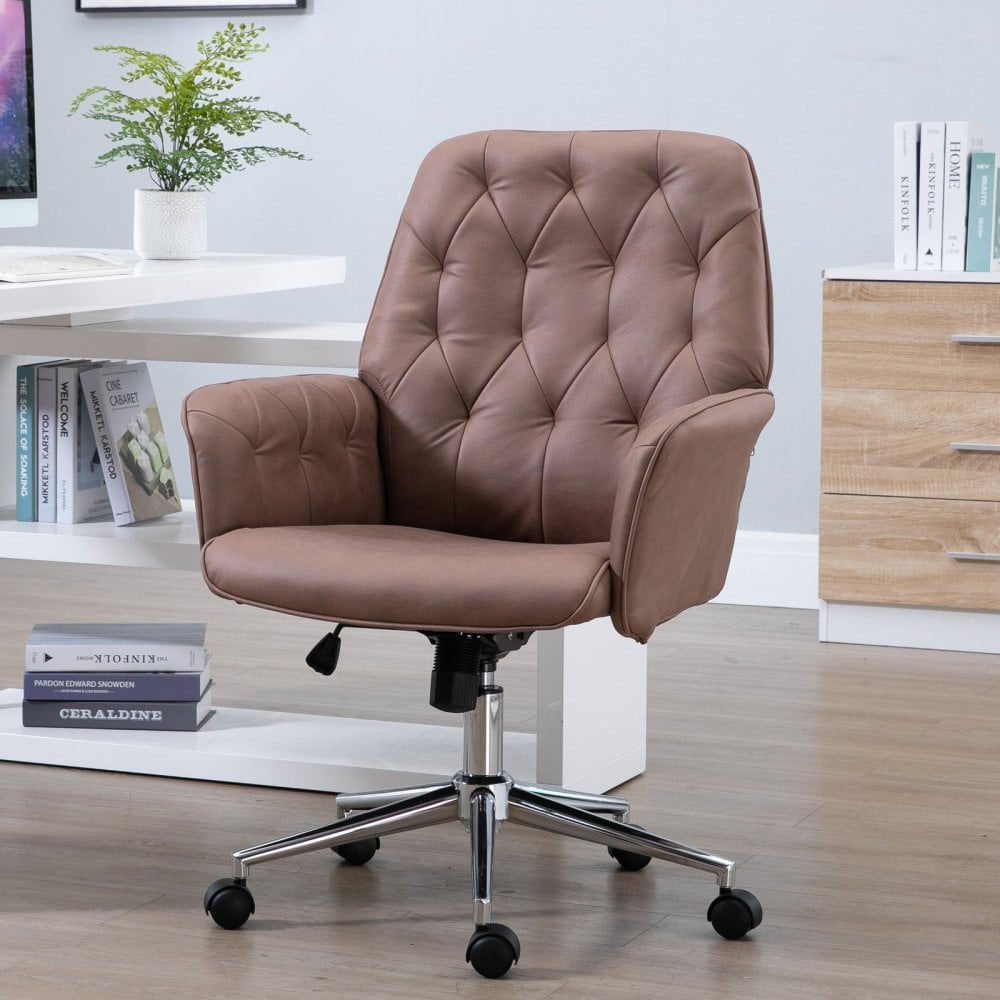 Vinsetto Tufted Desk Chair w/ Arm Rest on Wheels Coffee Brown