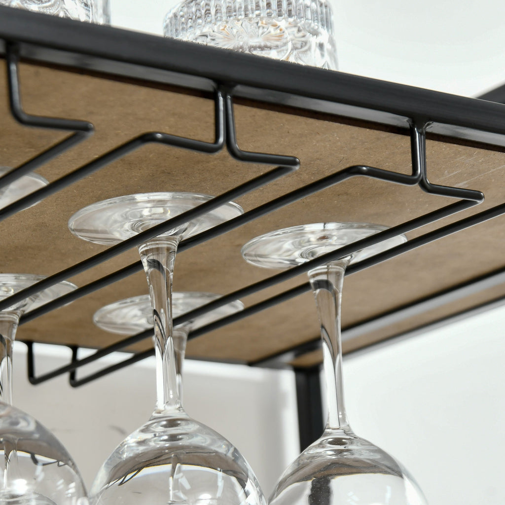 Tempted to wash away the day's stresses with a glass or two? Select a bottle from this bar cabinet. 2 open shelves, 3-row glass holders 30-bottle wine rack provides ample space for your wine collection and utensils. Retro industrial style makes the drawer cabinet a great fit in a modern or traditional setting.